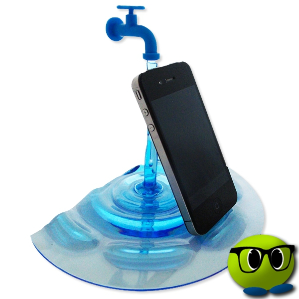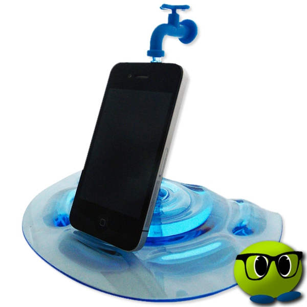 Ce dock iPhone montre l’image d’un robinet ouvert, qui laisse couler une belle flaque d’eau sur laquelle vous pourrez placer votre mobile.