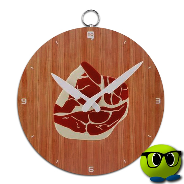 Cette horloge murale est l’accessoire idéal pour apporter une touche personnalisée et insolite à votre cuisine. Elle présente un dessin de côte de porc sur son milieu. Et elle est munie de couteaux en guise d’aiguilles.