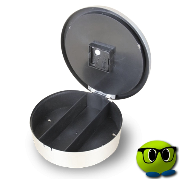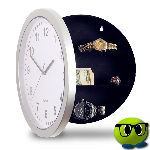 Insolite et pratique, cette montre murale est dotée d’un coffre-fort intégré pour cacher vos petits objets précieux.